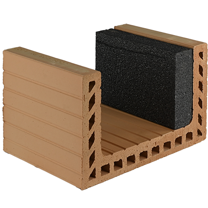 Mit U-Schalen lässt sich hervorragend die Schalung von Ringankern erstellen. Mittels der Ziegel kann äußerst effizient die “verlorene“ Schalung hierfür erstellt werden. Im Weitern wird dann die entsprechende – spricht statisch erforderliche Bewehrung – eingebaut und der Hohlraum mit Beton vergossen. Neben der rationellen Bauweise ergibt sich auch ein absolut einheitlicher Putzgrund. Die U-Schalen sind erhältlich passend zu den jeweiligen Mauerwandstärken – sowohl mit als auch ohne Dämmkern.